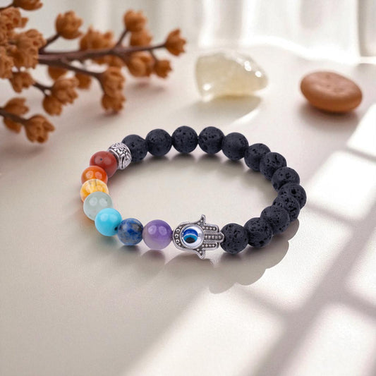 7 Chakra with Lava Stone Bracelet - Complete Energy Alignment